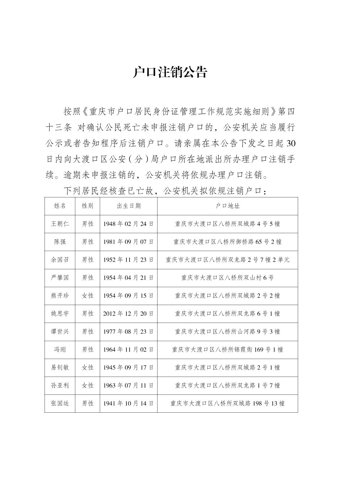 户口注销公告