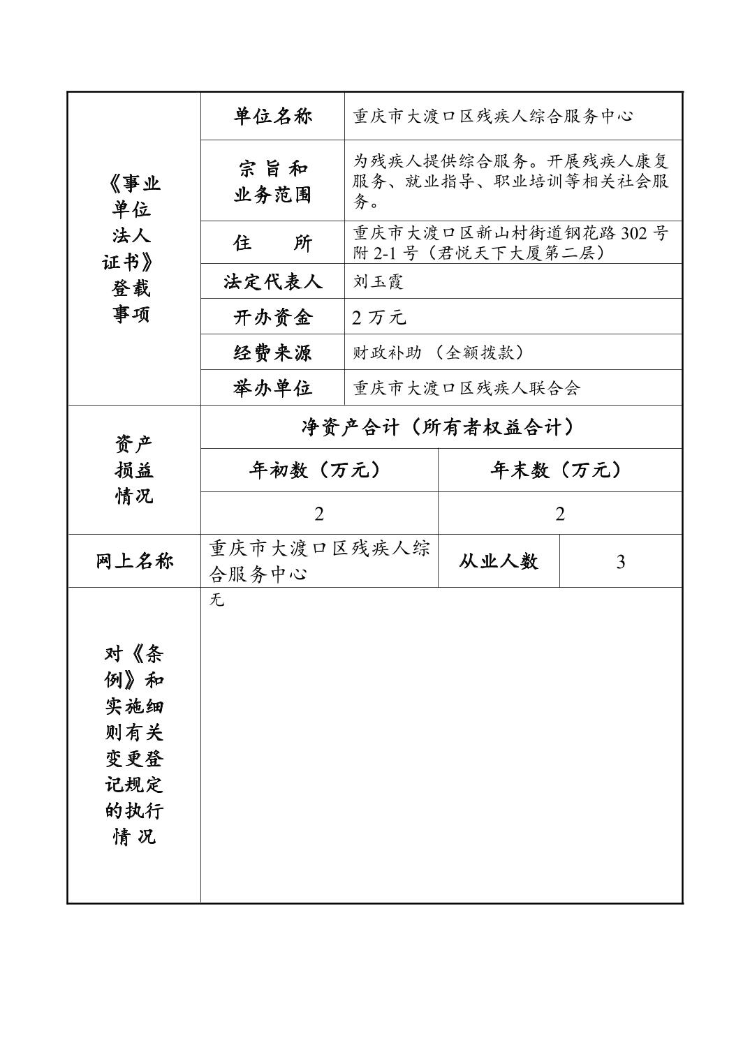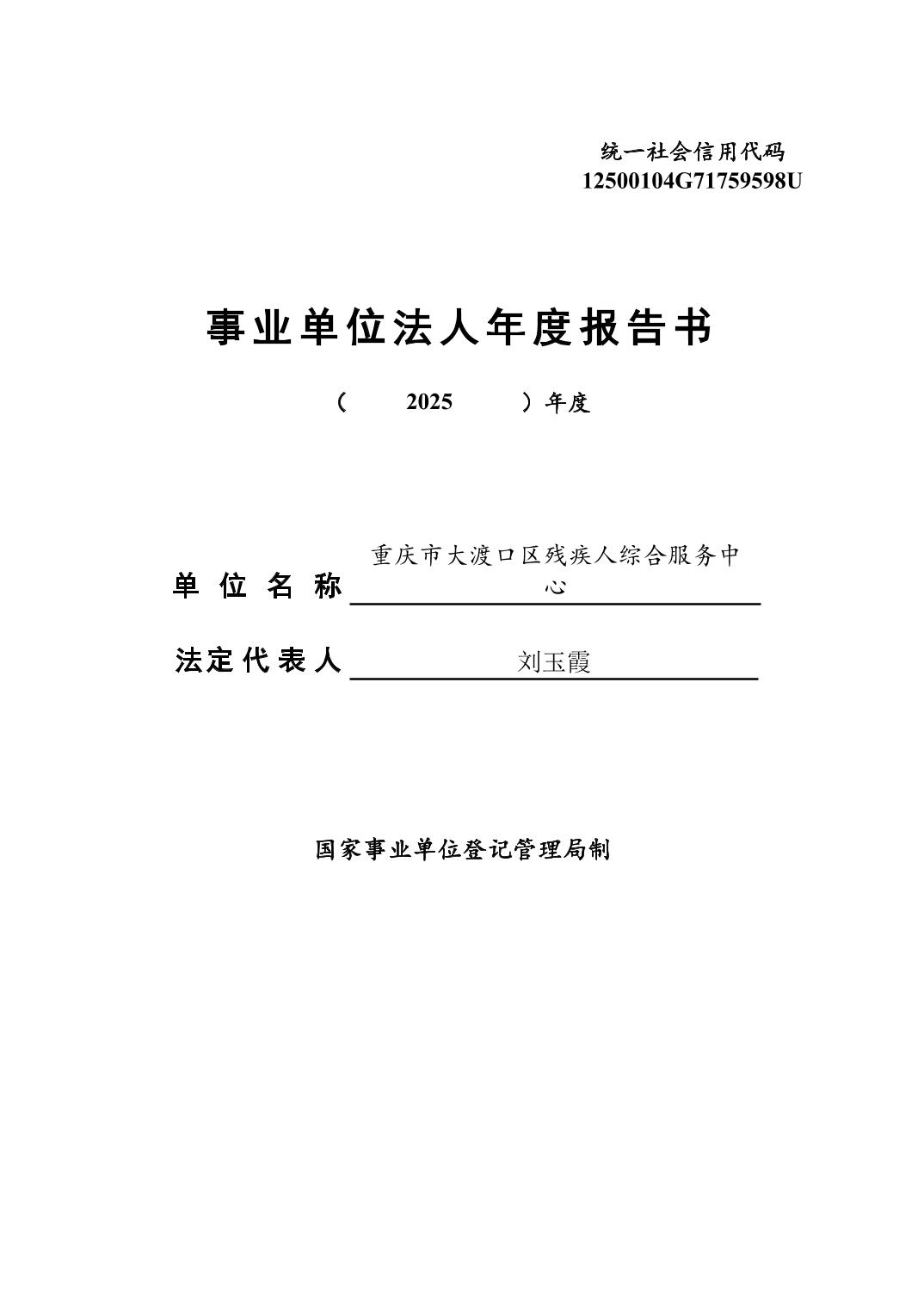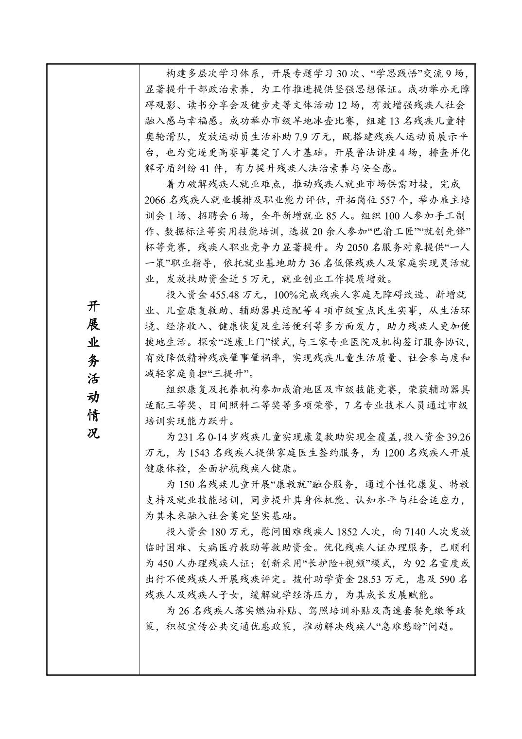 重庆市大渡口区残疾人综合服务中心法人年度报告书