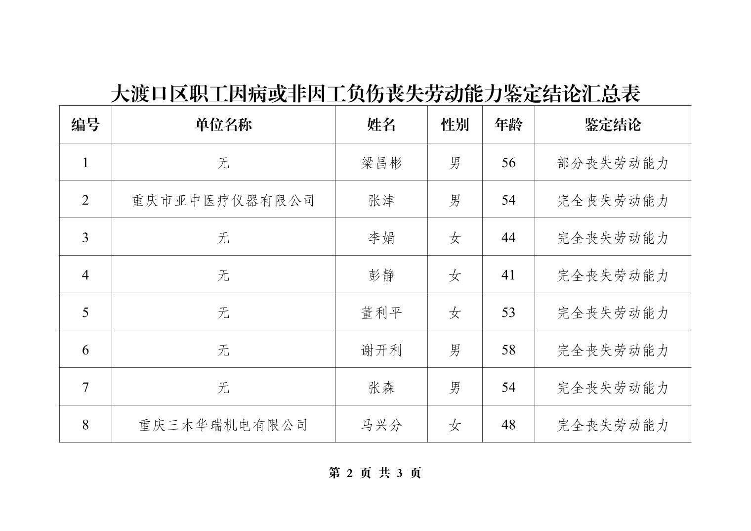 大渡口区劳动能力鉴定委员会办公室关于病残鉴定结论的公示202602批次